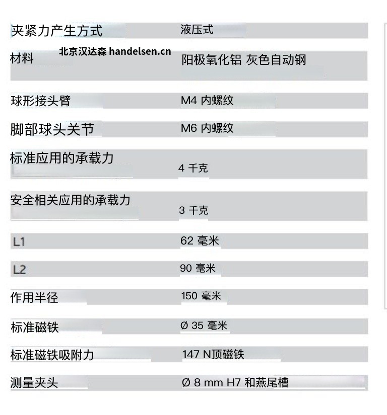 德国HG磁性表座尺寸260mm吸附力800牛可调节